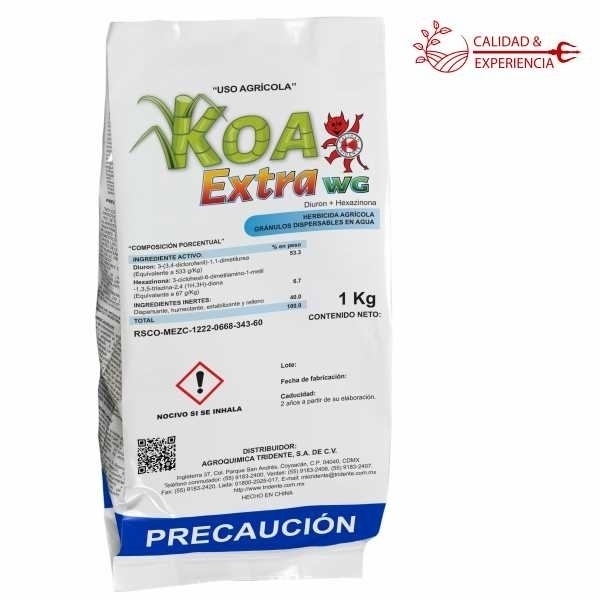 Koa Extra WG Herbicida agrícola post-emergente a base de diuron más hexazinona en gránulos dispersables para el control de malezas en caña de azúcar.